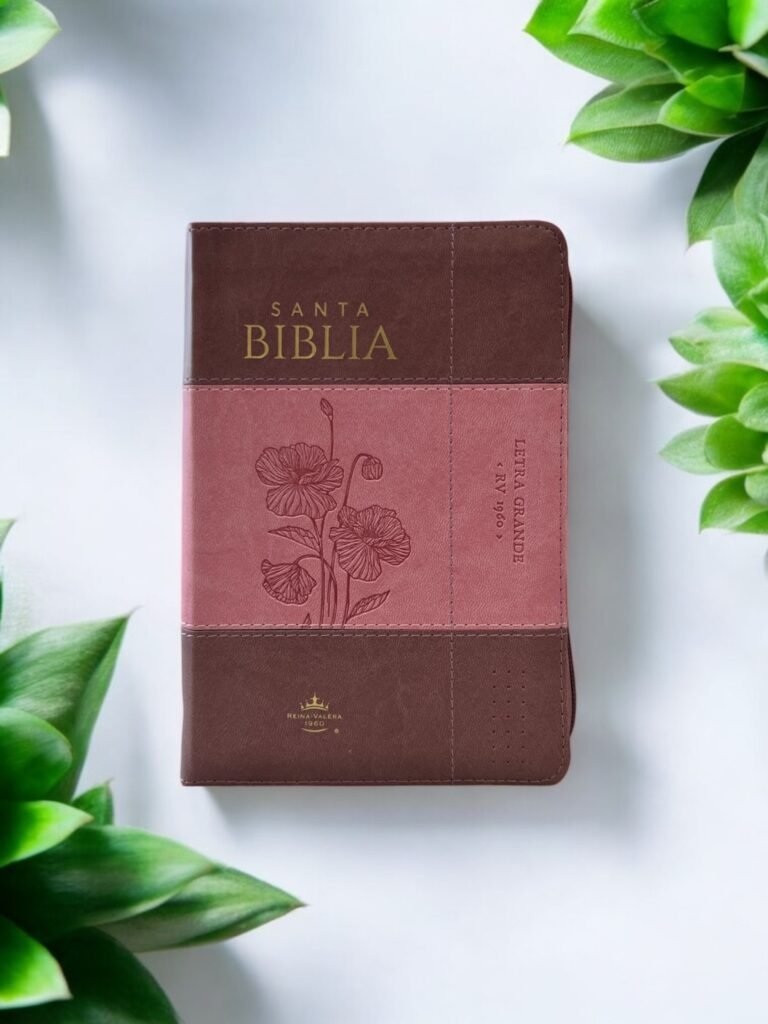 Esta  única Biblia RVR60 compacta con elegante cubierta bicolor coral y rosa. Su letra grande de 12 puntos ofrece una lectura clara, mientras su tamaño portátil y cierre protector la hacen perfecta para llevar la Palabra de Dios contigo todos los días. 📖✨